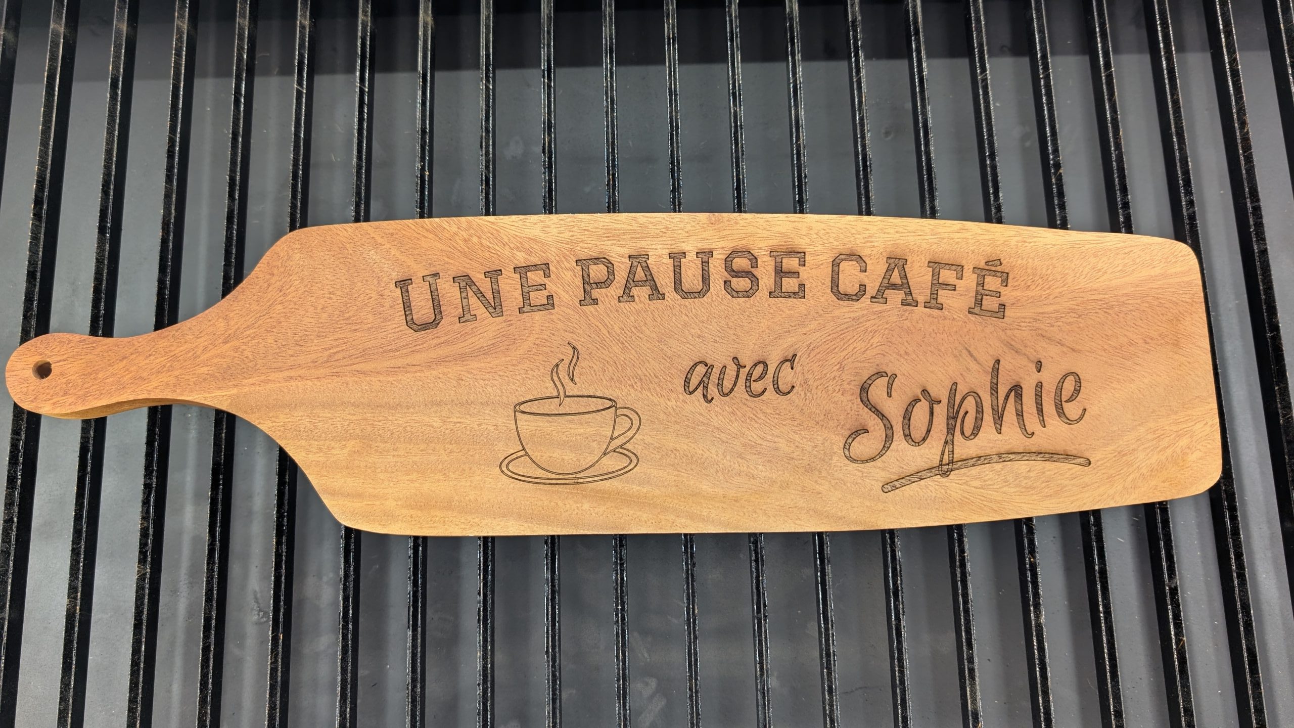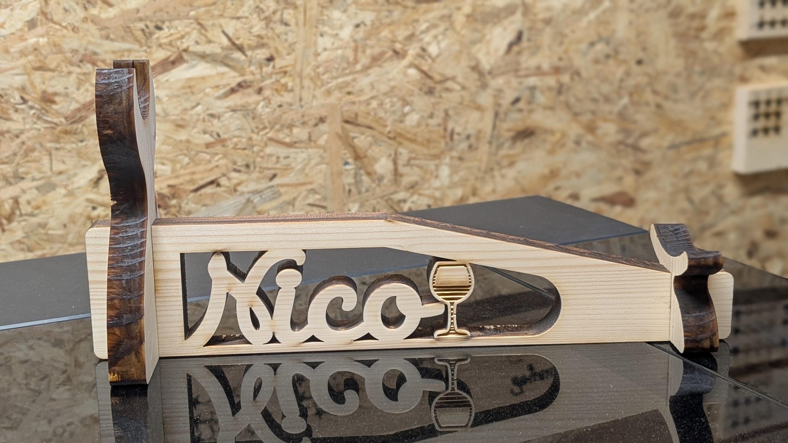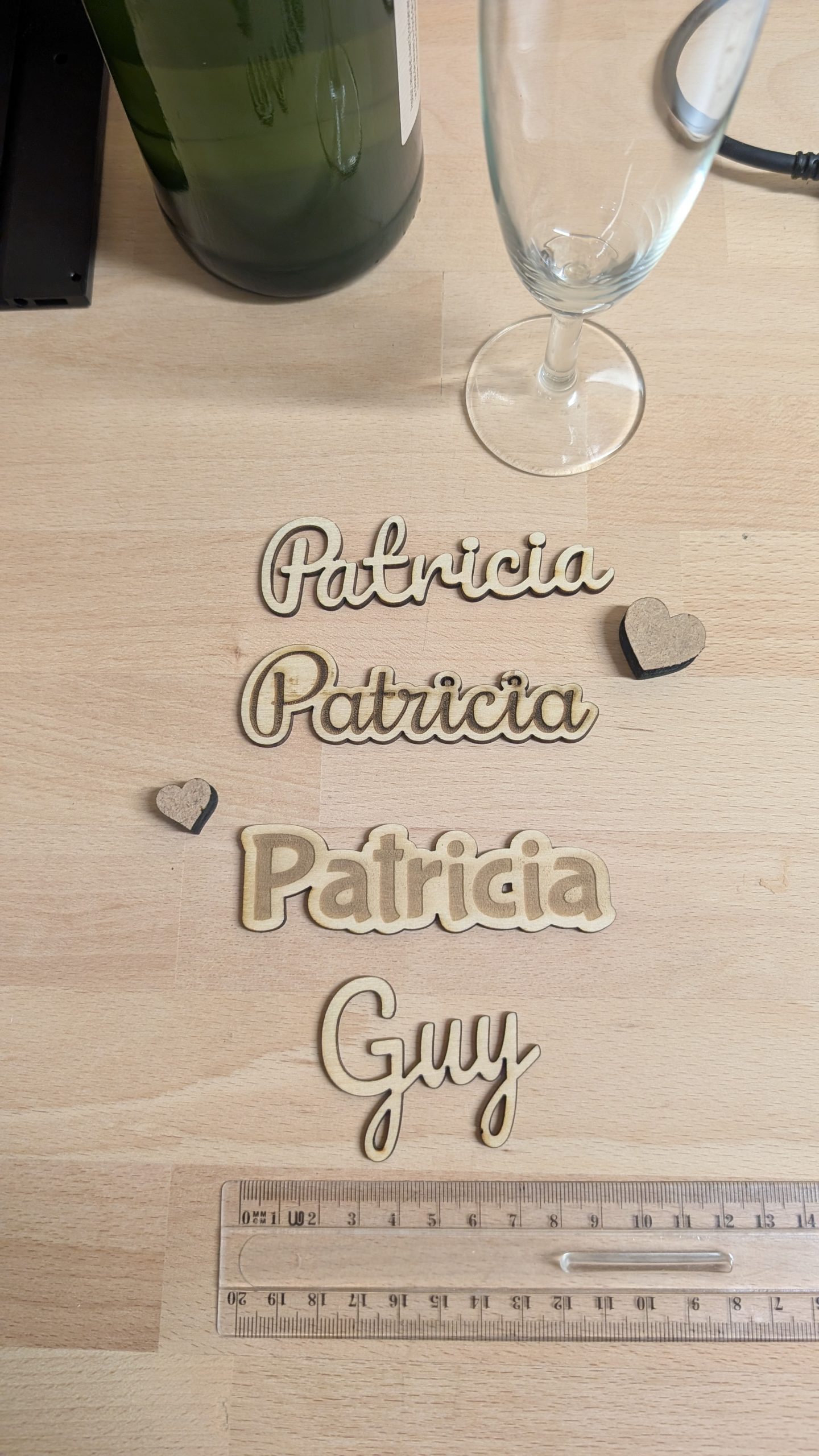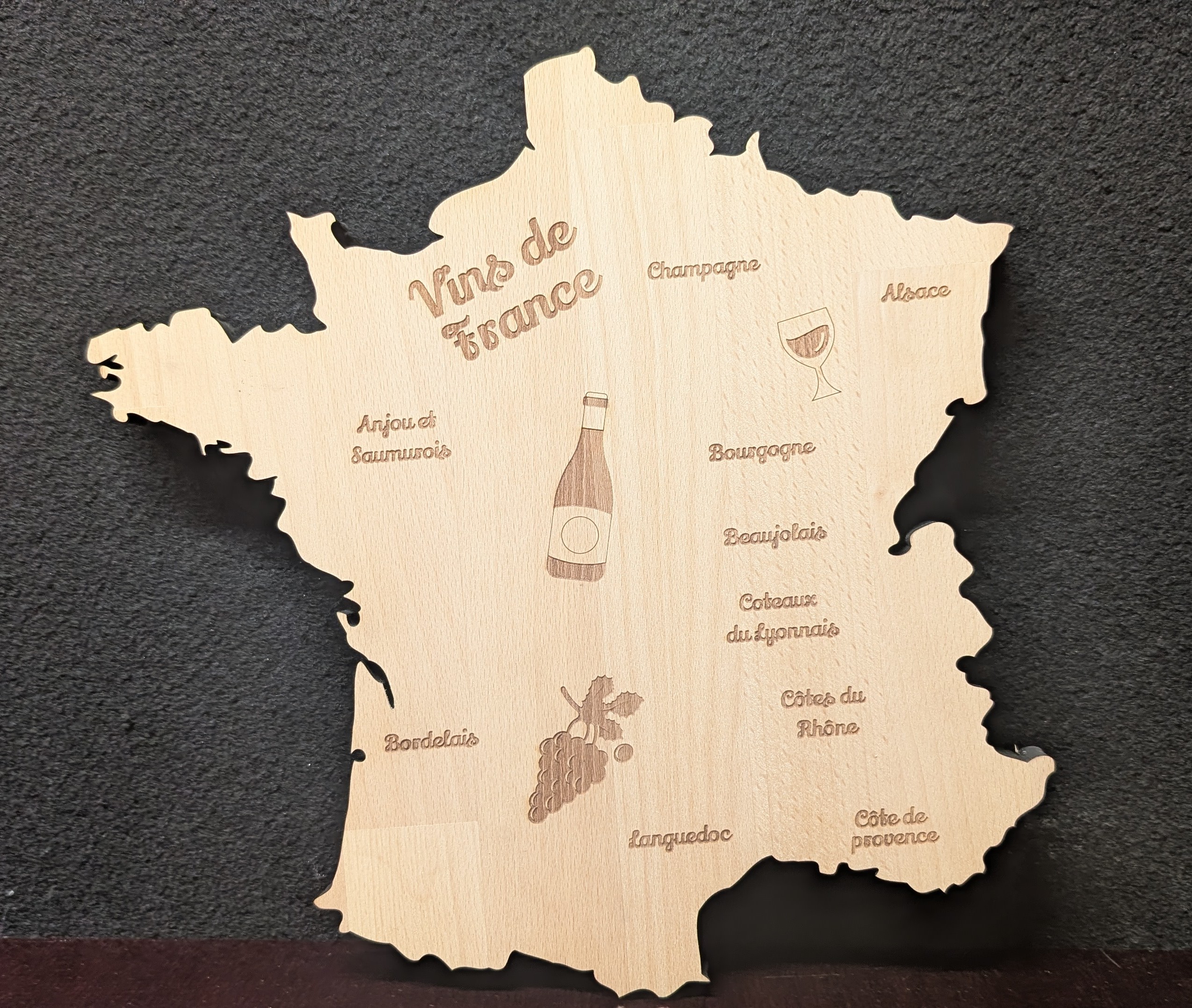 Nous proposons depuis peu des objets en bois gravés personnalisables, que ce soit des supports pour bouteilles, des prénoms pour porte de chambre, des décorations de votre équipe de rugby favorite et bien d’autres !